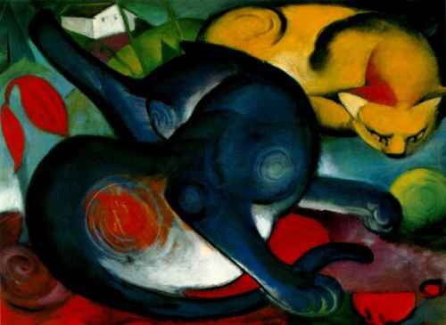 Franz Marc considered humans being ugly souls. However, cats are always beutiful, outside as well as inside.