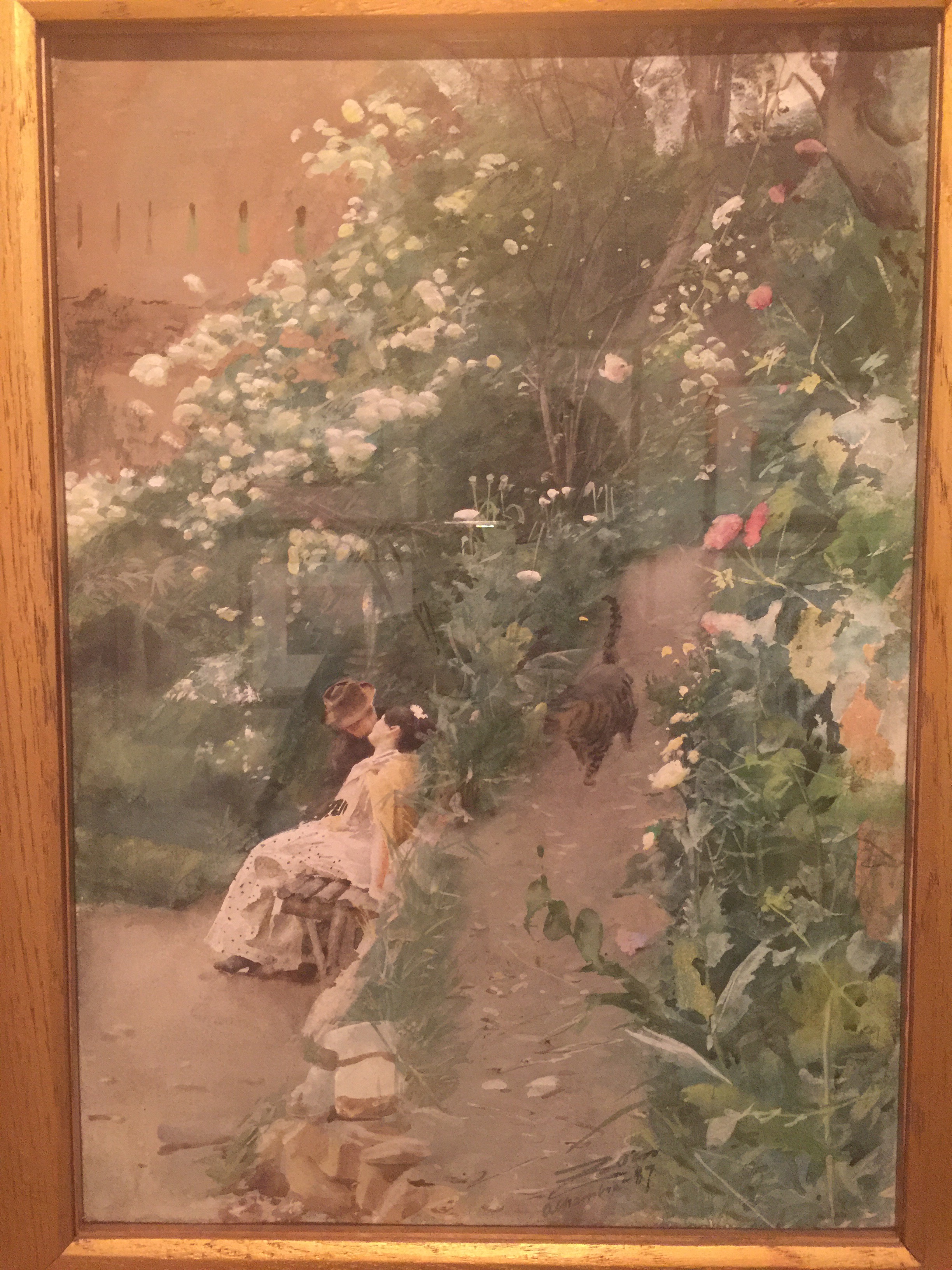 Mrs. Johnson lent My Wife’s Lovers to the 1893 Chicago World’s Fair, where it became an immediate sensation (Final Report of the World’s Fair Commission, Chicago, p. 58.). Soon after Mrs. Johnson’s estate auction of 1894, the painting was acquired by fellow San Franciscan Ernest Haquette who displayed it in his “Palace of Art Salon,” which was destroyed in the Great Quake. My Wife’s Lovers was next hung in Frank C. Havens’ Piedmont Art Gallery, a public museum, where it attracted further admirers. Later owners, Mr. and Mrs. Julian of Chicago, sent My Wife’s Lovers on tour through the United States in the 1940s and to Madison Square Garden for, appropriately, a cat-show. With the Julian’s promotion, Kahler’s work became so popular that 9,000 prints were sold after the original painting, and in 1949, Cat Magazine called it “the world’s greatest painting of cats.” (Robert Reed, “Inside Antiques,” http://www.waybacktimes.com). But this is not the end of the story. Even after her death Mrs. Johnson continued to cherish her cats; her will stipulated a gift of $500,000 to guarantee their perpetual care and comfort.